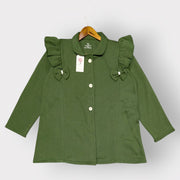 Add a touch of charm to your little one’s wardrobe with this elegant pink coat. Featuring adorable ruffle shoulder details, decorative bows, and sparkling buttons, this soft and cozy piece is perfect for both casual and dressy occasions. A stylish outer layer that keeps her warm while looking oh-so-cute!