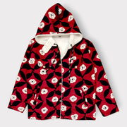 Stay stylish and warm with our Cozy Floral Hooded Jacket, featuring a bold red background with black leaf and white rose prints. Designed with soft sherpa lining for ultimate comfort and warmth, this jacket is perfect for chilly days. Complete with a hood, front buttons, and handy side pockets, it’s both fashionable and functional — ideal for casual outings or cozy evenings.