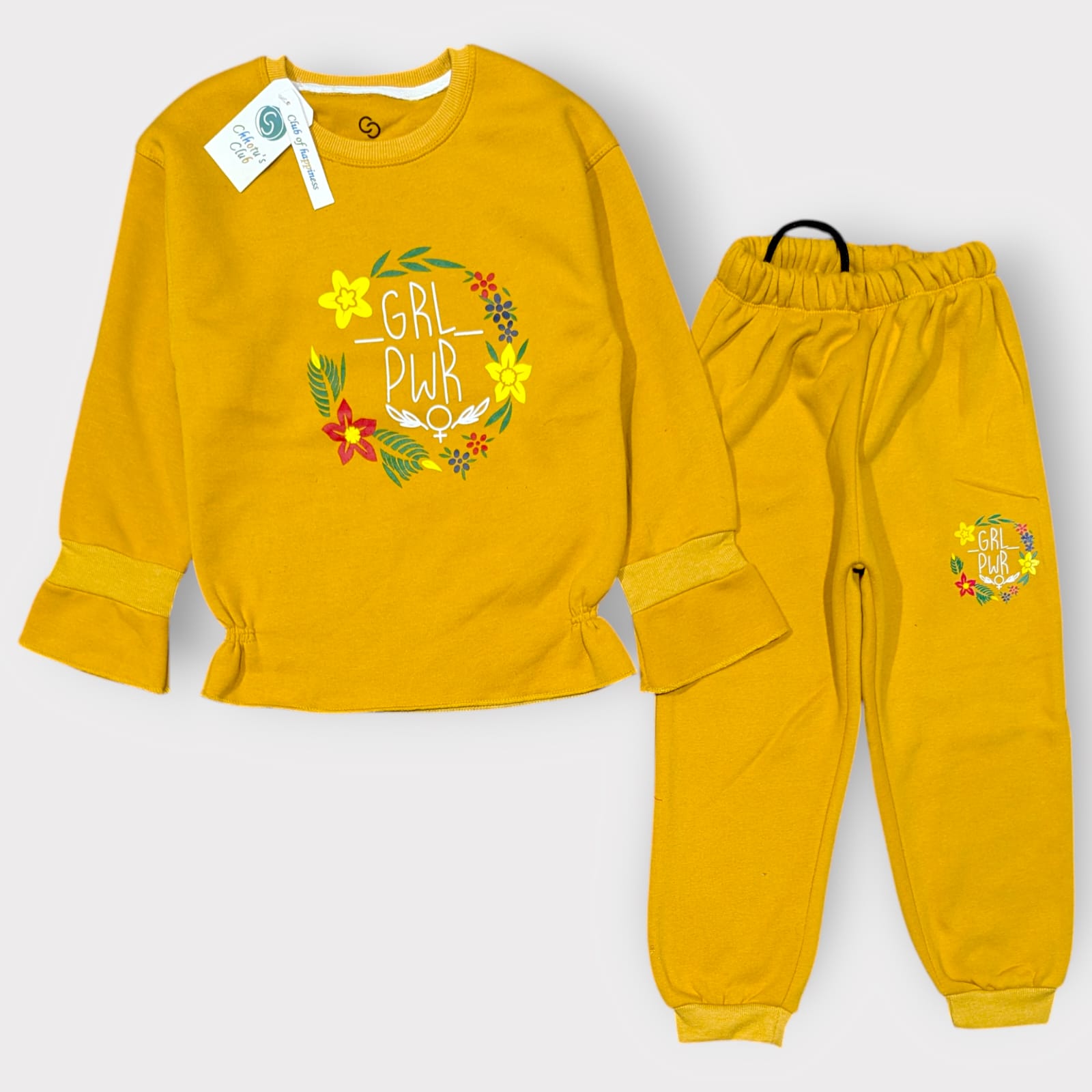 Bright, cozy, and full of attitude! This GRL PWR mustard fleece set offers soft comfort, cute floral graphics, and a perfect fit for everyday style. Ideal for winter days and active play.