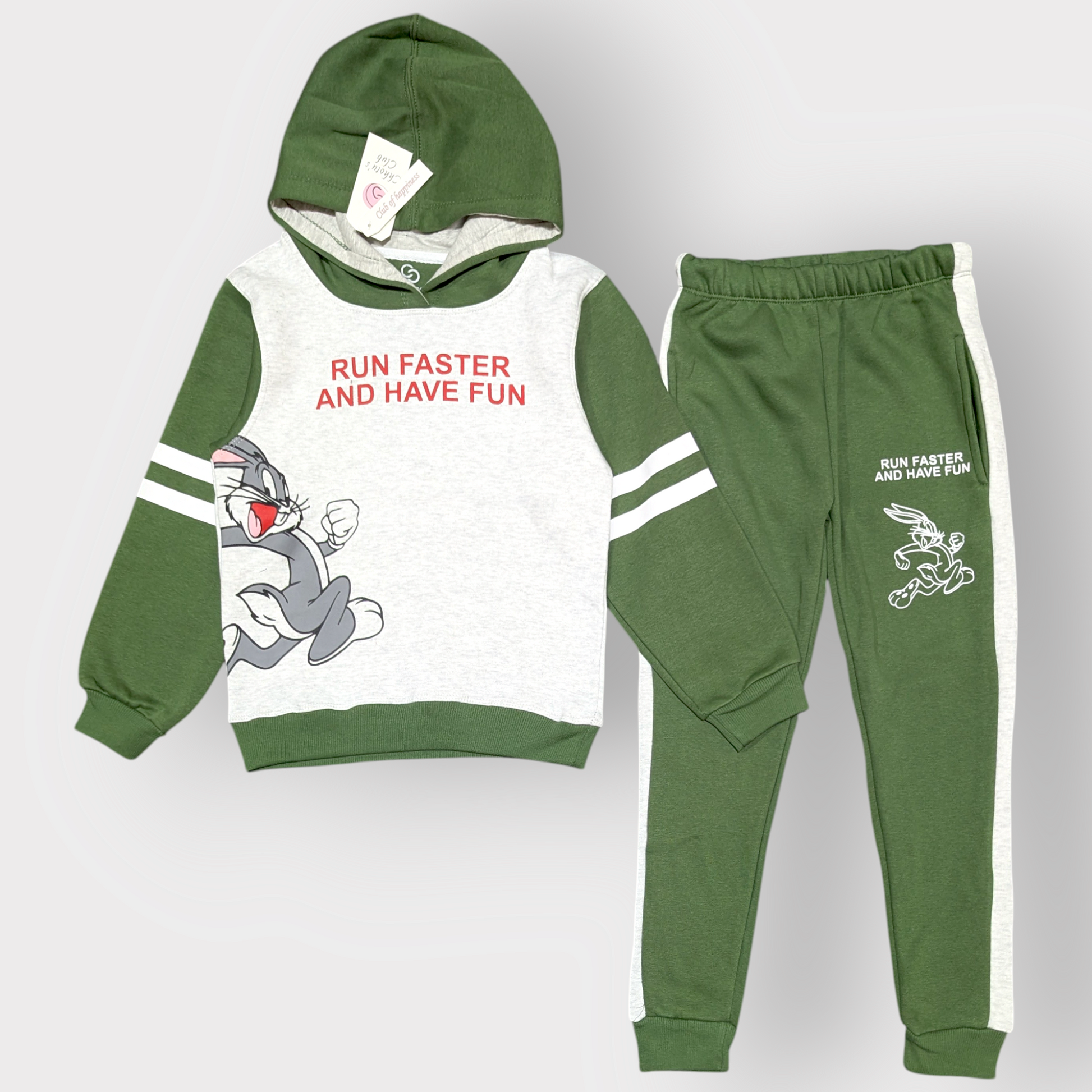 Run Faster and Have Fun" Green Hooded Tracksuit